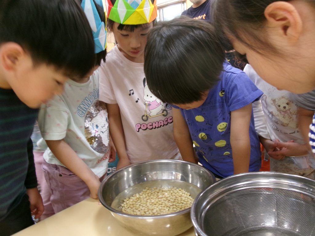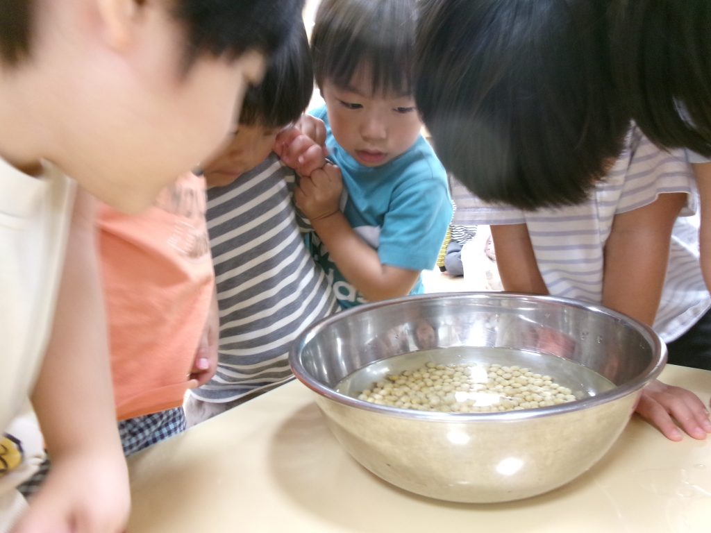 「きのうとぜんぜんちがう!」「あかちゃんおまめだったのに今日はおとなのおまめになってるね」などなどみんな楽しそうに大豆の変化を観察していましたよ。