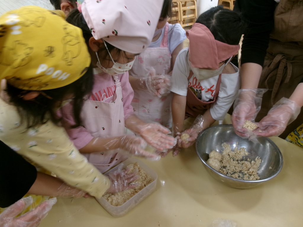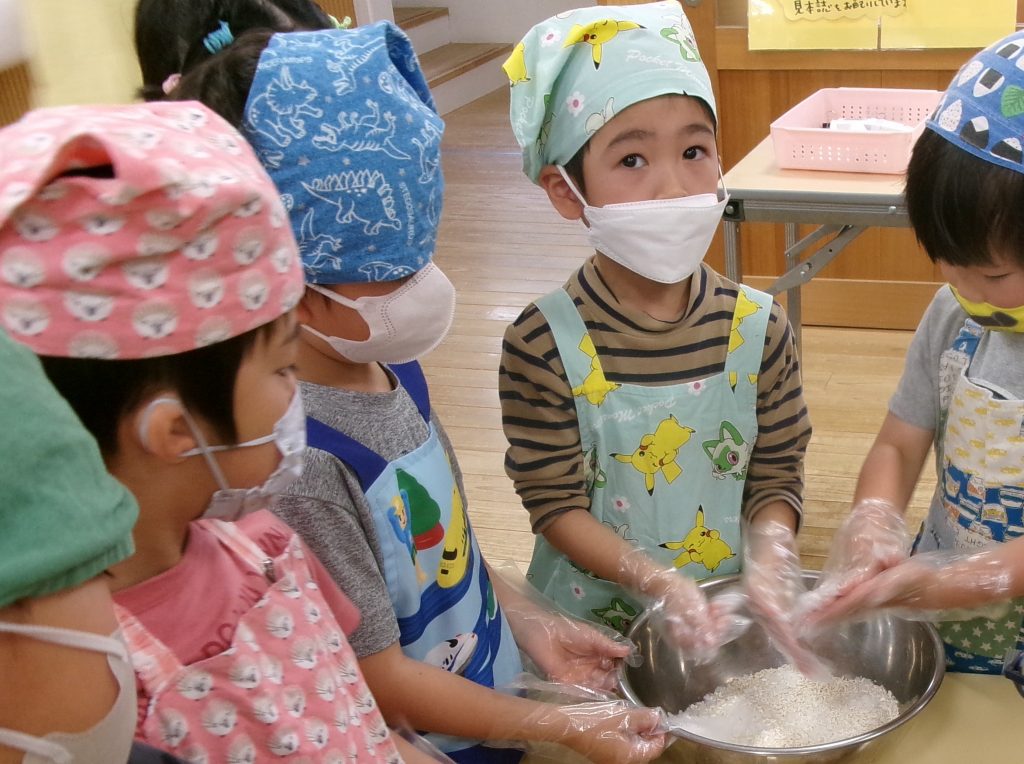 今年は幼児クラスでみそをつくってみよう!ということでみんなで仕込みを行いました。