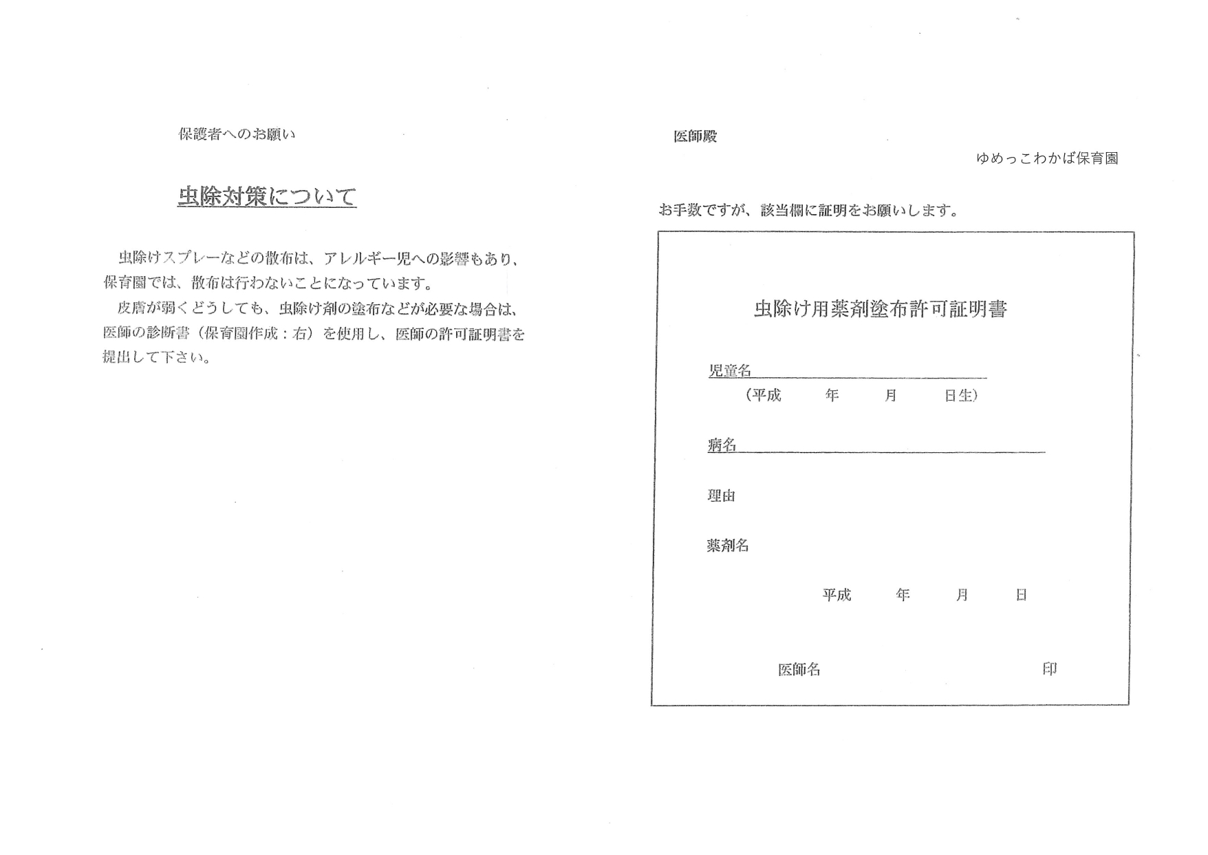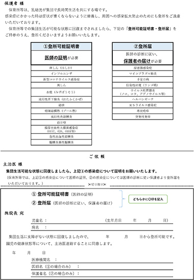 保育園提出用の各種書類のPDFをこちらからダウンロードいただけます。